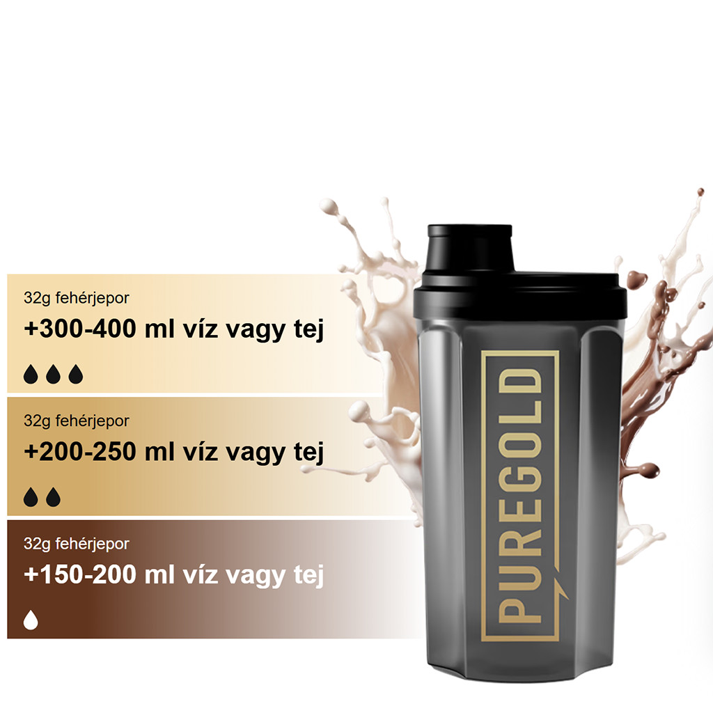 Pure Gold Compact Whey Gold ízesített tejsavófehérje-koncentrátum alapú italpor hozzáadott emésztőenzimekkel és édesítőszerekkel.