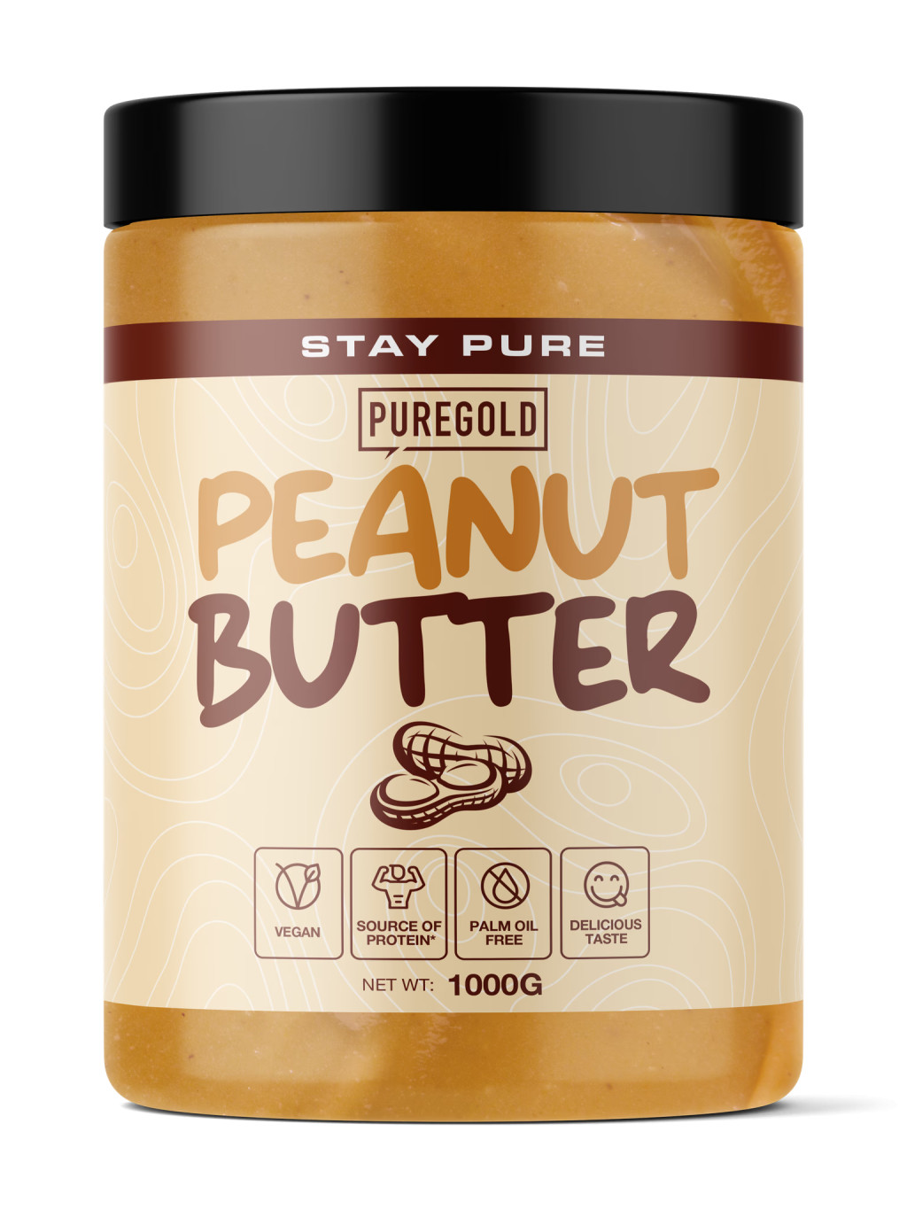 Pure Gold Peanut Butter hozzáadott cukor, só, tartószítószer és pálmaolaj nélkül.