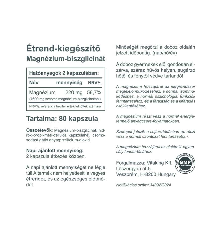 Vitaking Magnézium Biszglicinát (80) vegán kapszula (Magnézium kelát) 80db